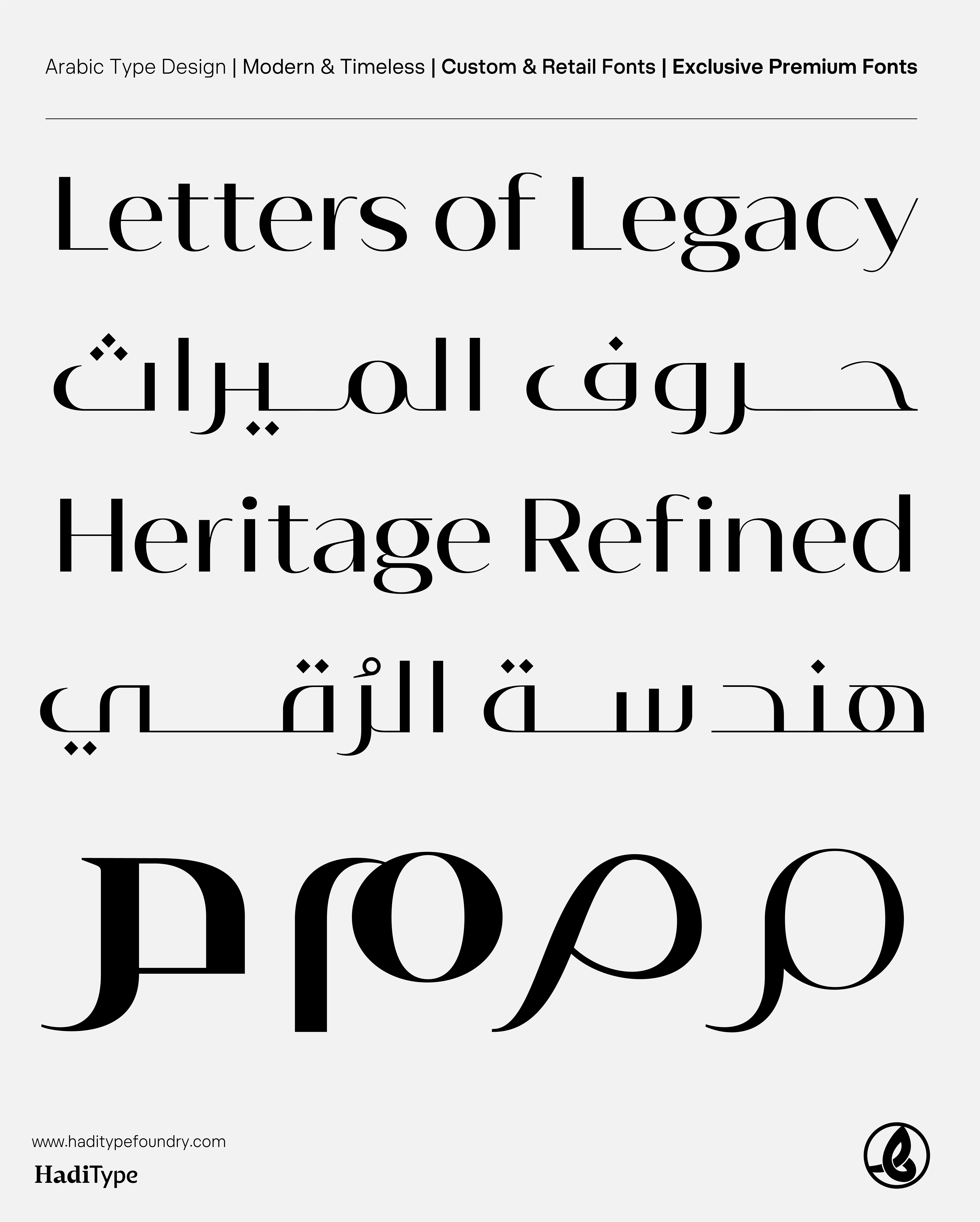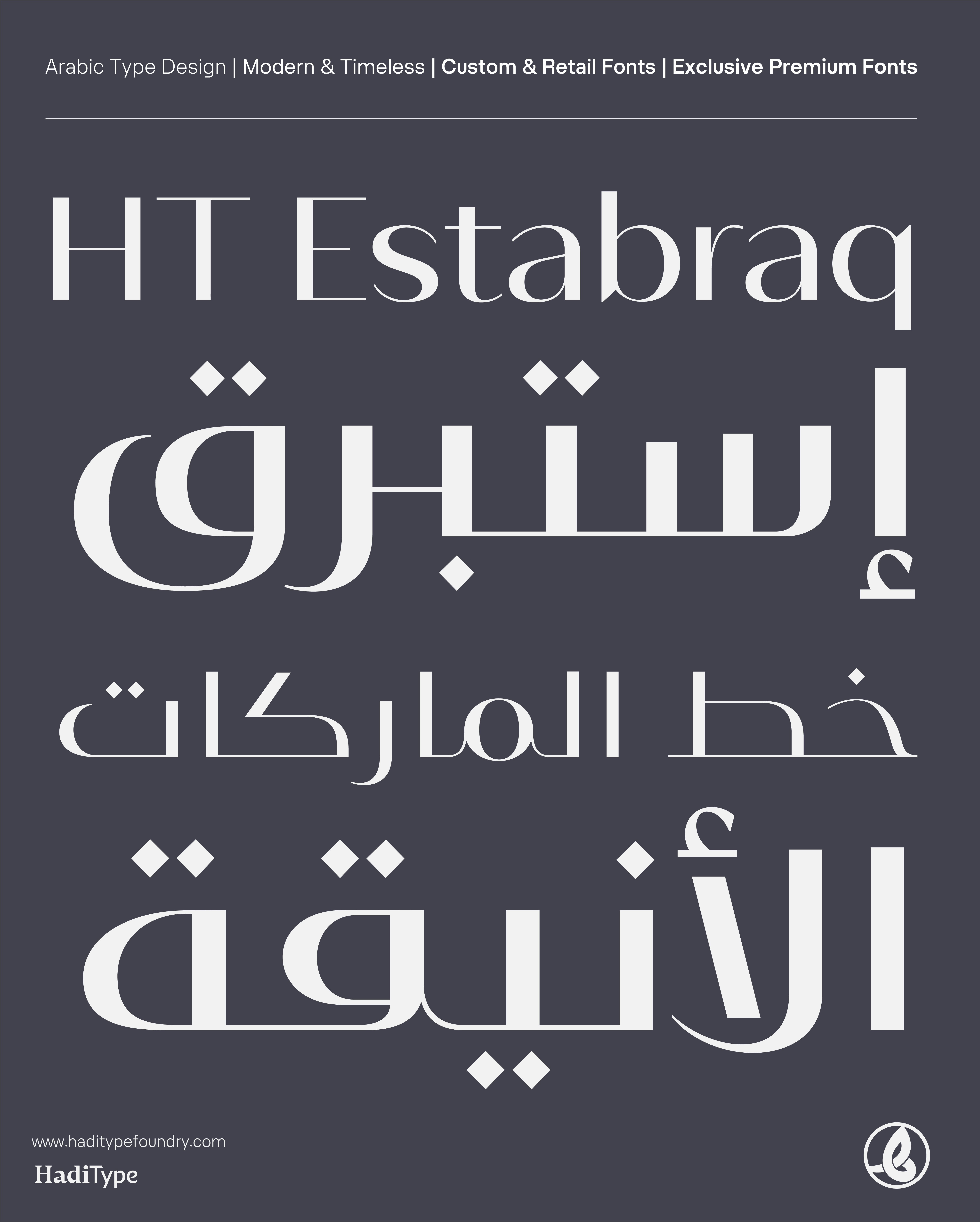 Together, these two families offer designers the flexibility to navigate between timeless elegance and modern simplicity, making Istabraq the ideal choice for logo Arabicization, premium branding, packaging, and cultural publications.