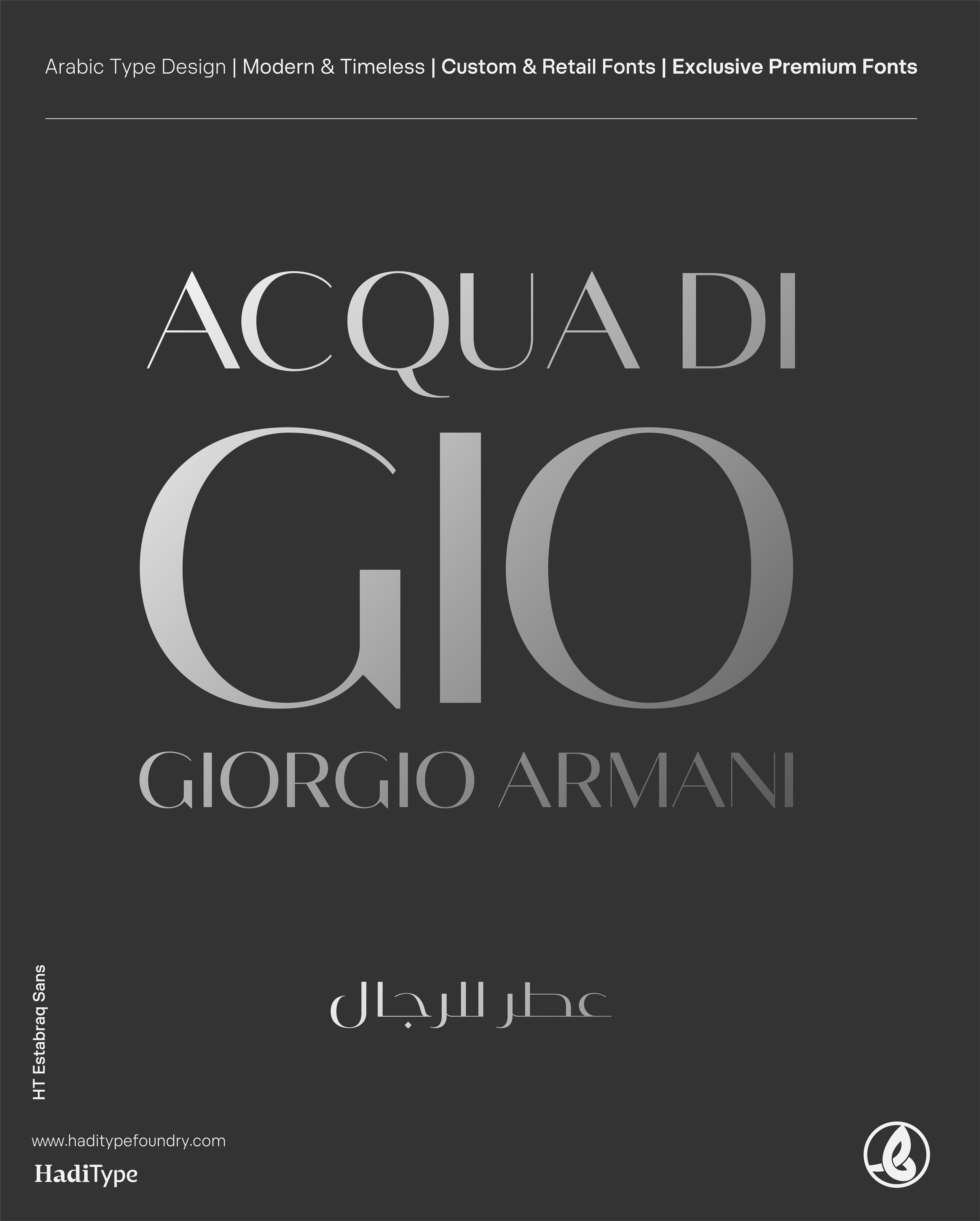 Istabraq is a luxury Arabic–Latin typeface family available in two complementary styles: Istabraq — the classic serif-inspired design rooted in Kufic spirit and European luxury aesthetics, and Istabraq Sans — a contemporary, streamlined counterpart tailored for modern branding, packaging, and editorial titles.