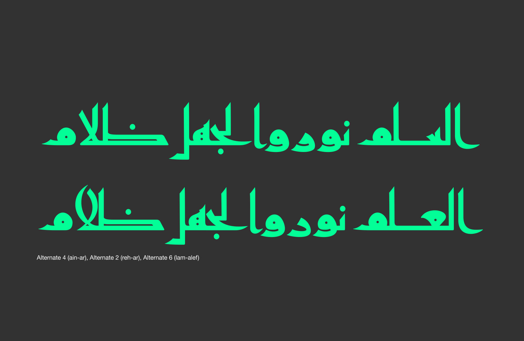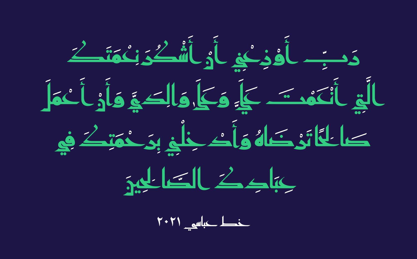 During the years «Abassi» was developed into an Advanced OpenType typeface, with the addition of many alternate forms like (hah, jeem, khah, reh, zain, ain, ghain, seen, sheen & lam_alef) to improve character readability, spacing, and balance.