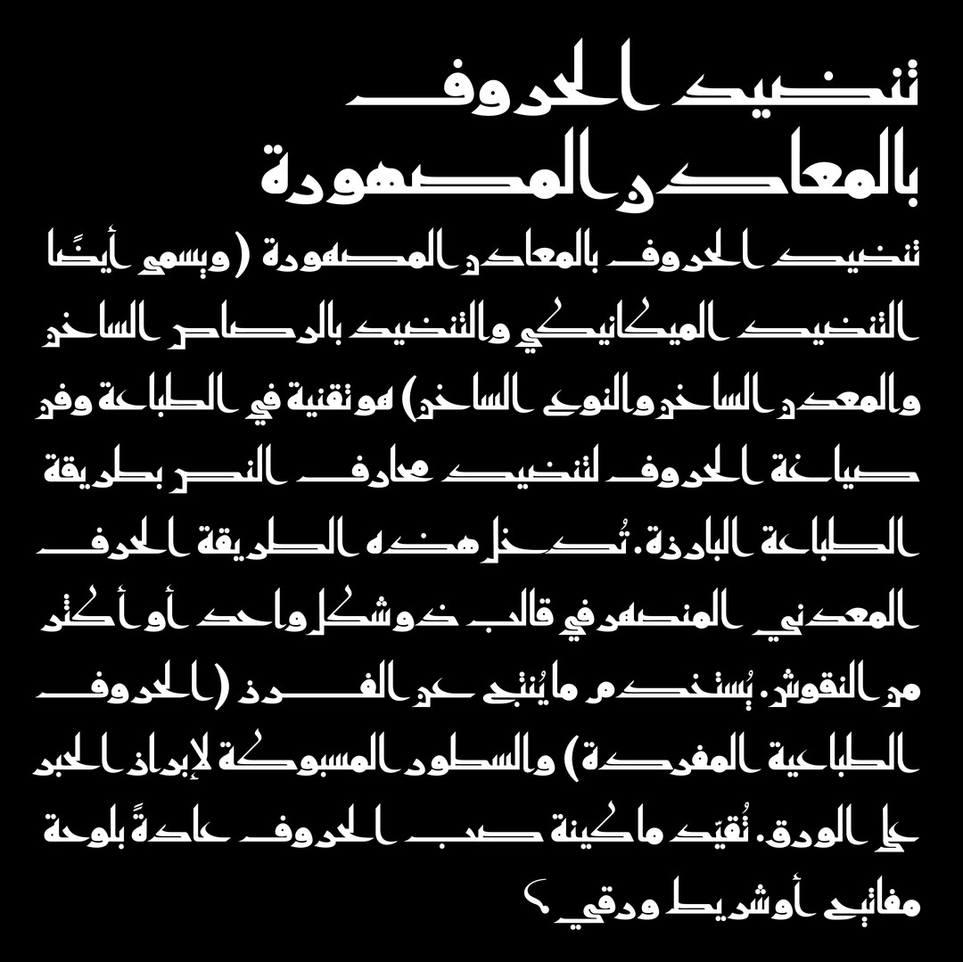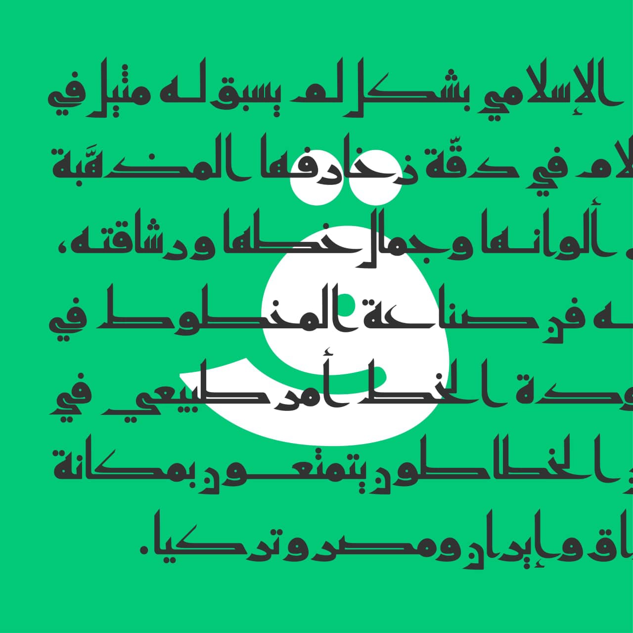 «Abassi» is a modern Arabic headline face Originally developed as a simplified face, its design recalls the Arabic calligraphy works from the 9th–10th century, which were usually written with ink and gold on parchment.