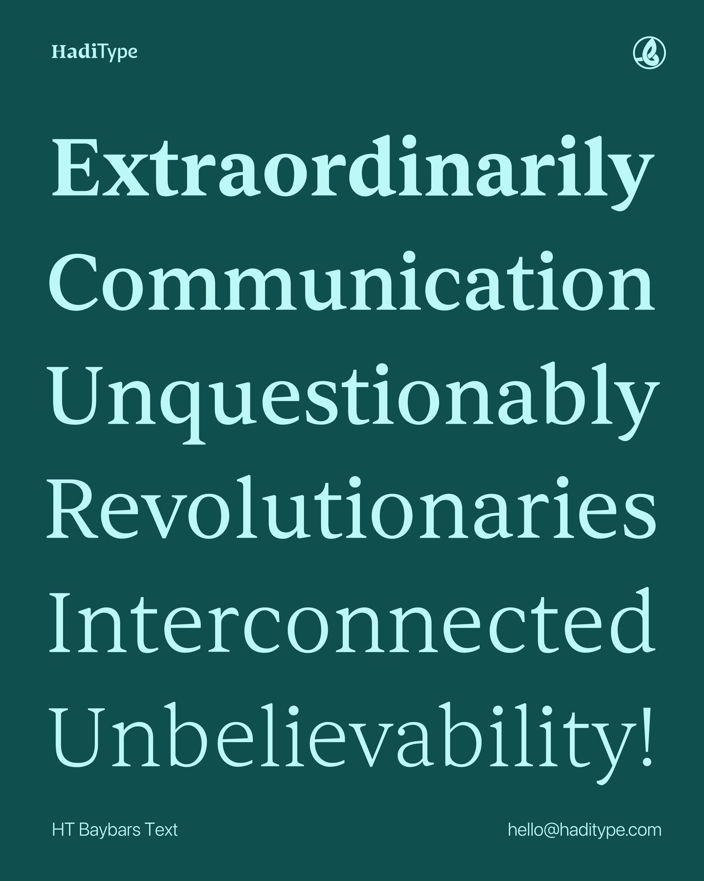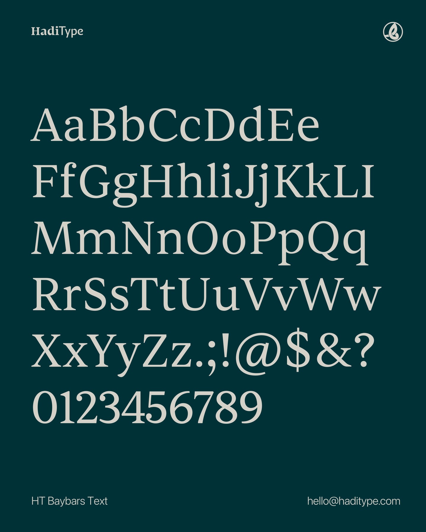 Designed with great attention to detail and care in drawing connections, "Baybars Text" ensures high clarity in both large and small sizes while successfully conveying a sense of modernity and authenticity at first glance.