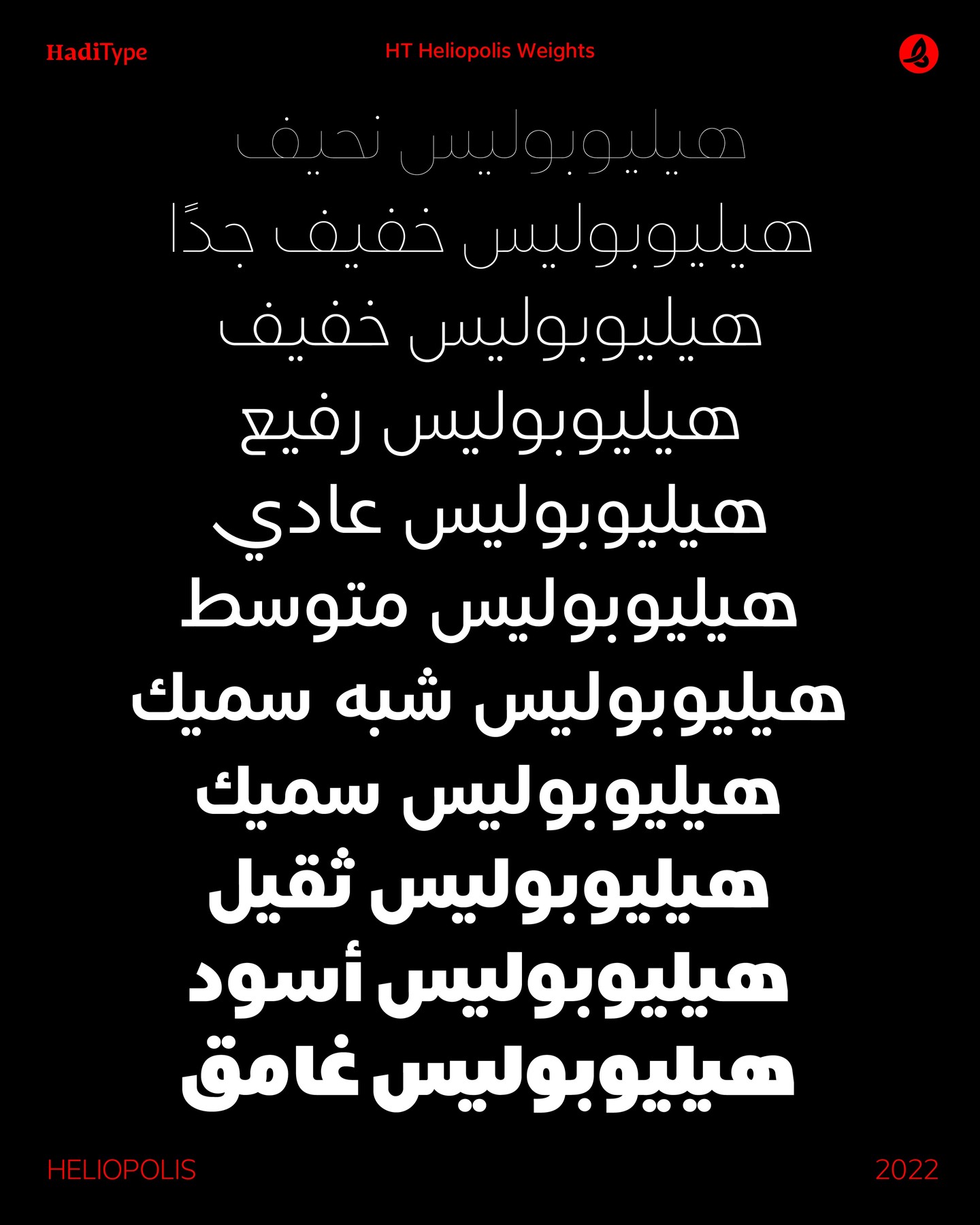 Heliopolis Font is a Kufic multilanguage typeface drawn for screens. We meticulously designed Heliopolis Font to work with small text sizes while maintaining exceptional beauty that aligns with today's technological diversity. The Heliopolis Font features an entirely new look and comes in several contrasting weights to fully meet your preferences, with sharp edges and elegant rounded corners.