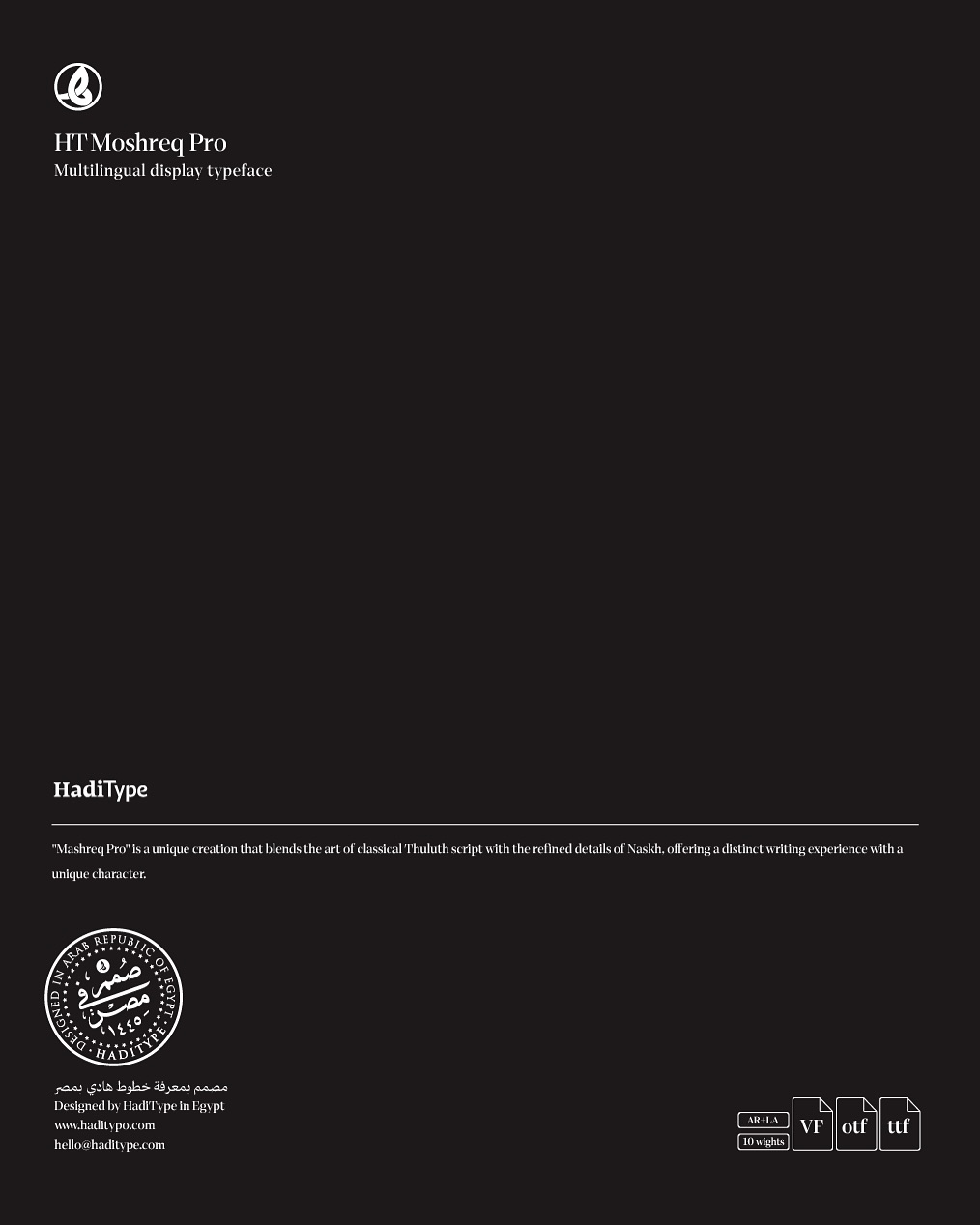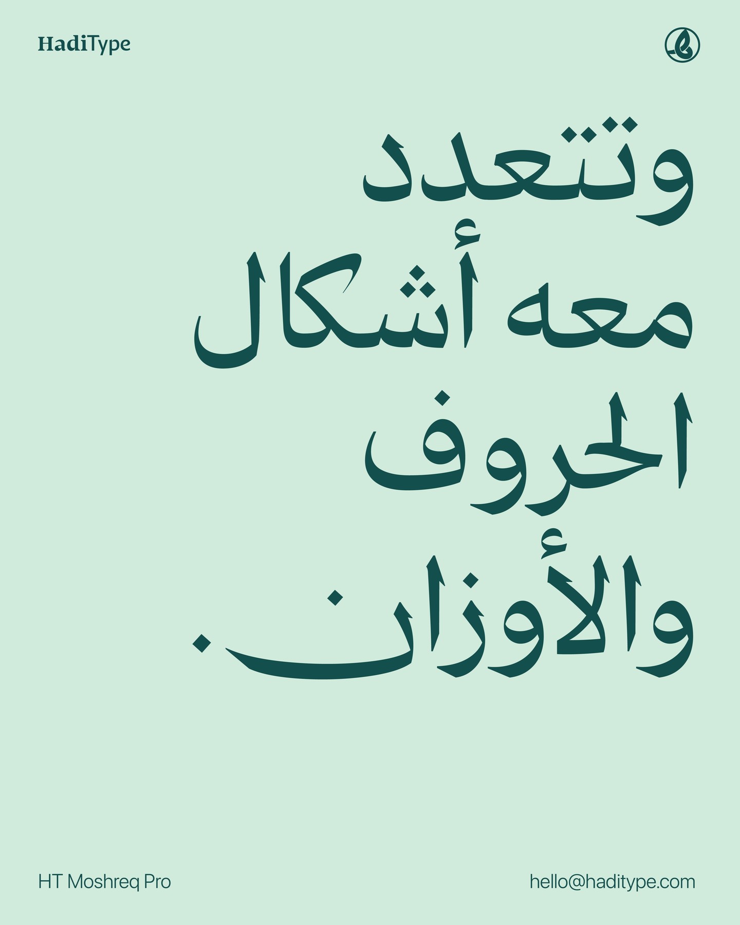Ideal for branding, editorials, titles, and posters, HT Moshreq Pro offers a seamless fusion of heritage and modernity.