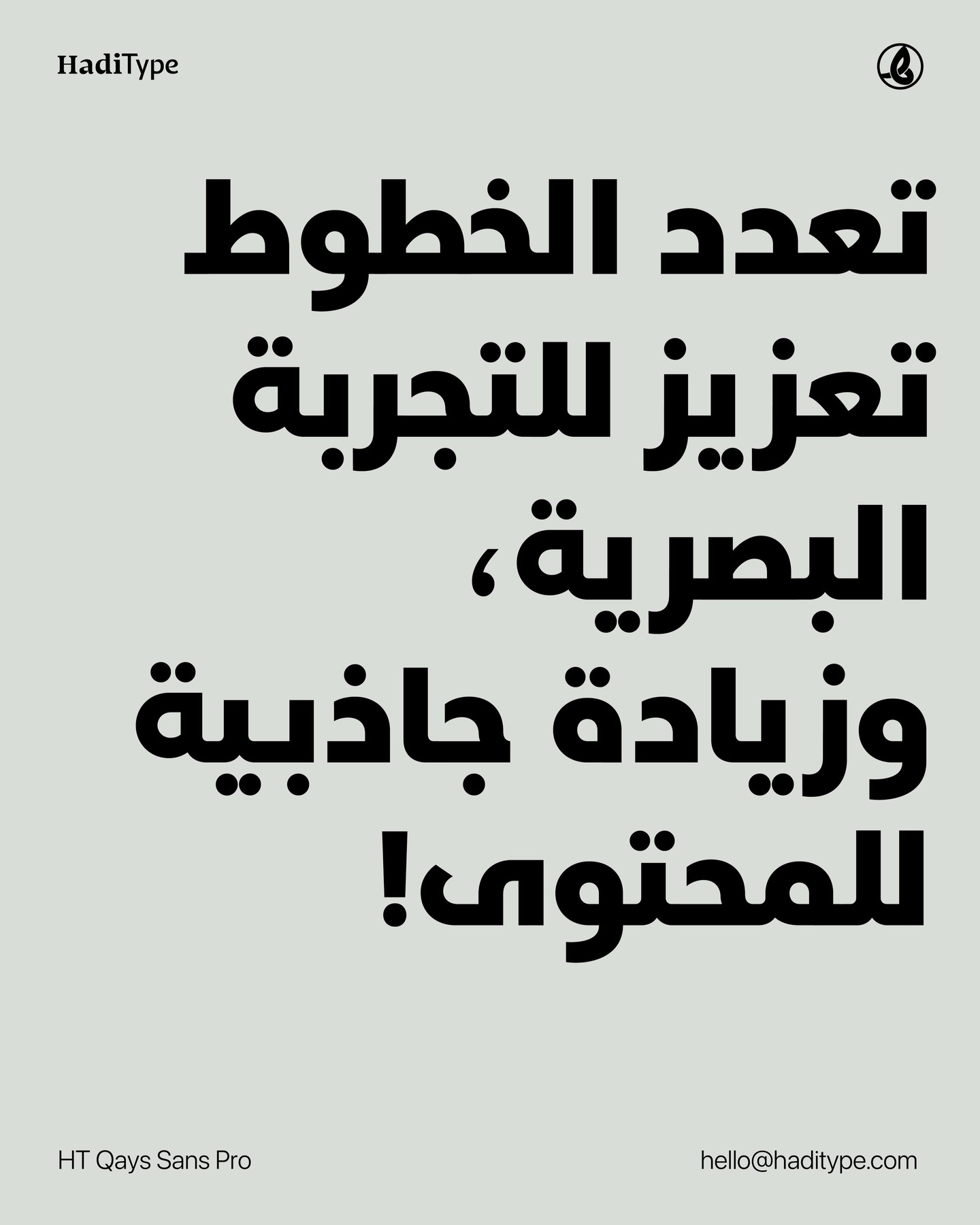 Qays Sans Pro™ Now provides full coverage of the Arab script, allows brands to maintain their visual identity, and communicates with a consistent voice tone with many famous Latin typefaces, offering linguistic versatility across environments – suited to branding and corporate identity, advertising, signage, wayfinding, print, and digital environments.